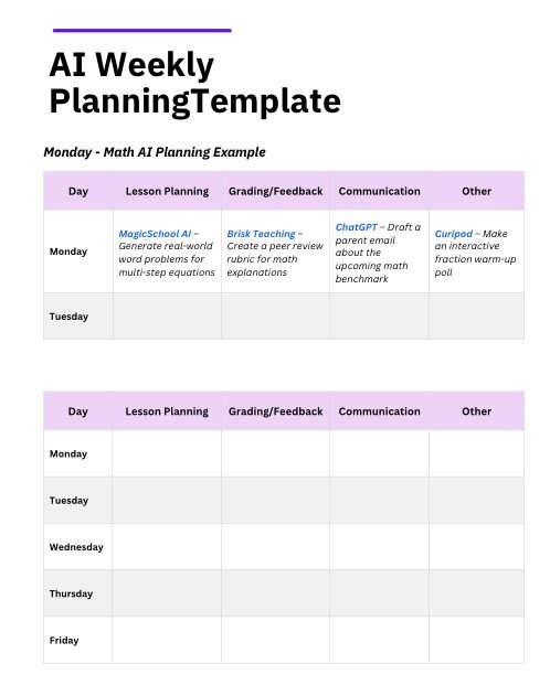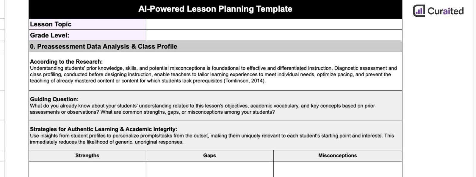 Editable Google Sheets template with AI suggestions for each segment of the lesson. Great for collaborative lesson planning!